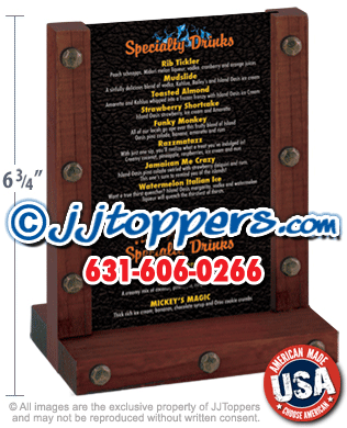 These eye-catching studded wooden table tents will help increase check totals on your cocktails, wines, specials, desserts and anything else you offer.
